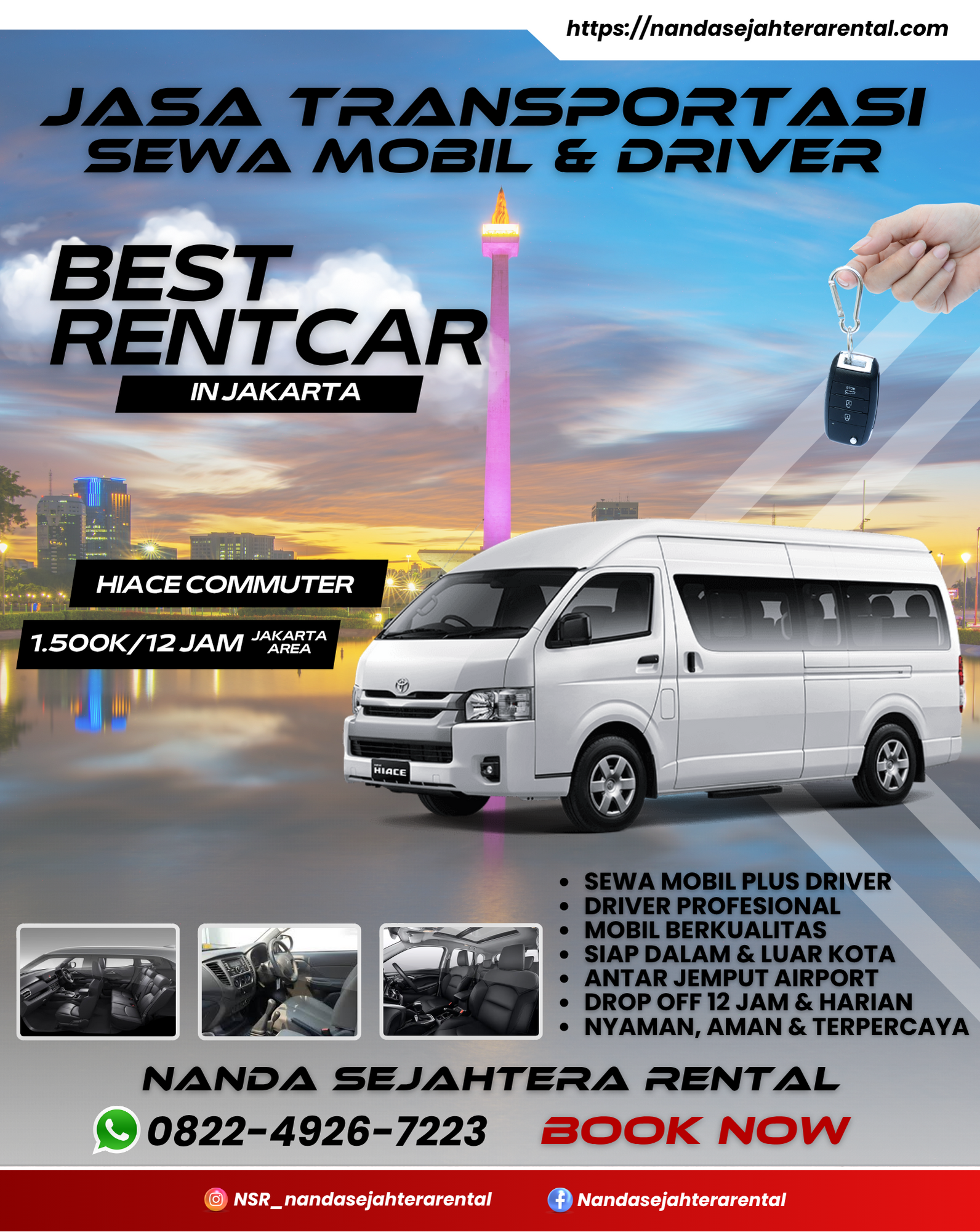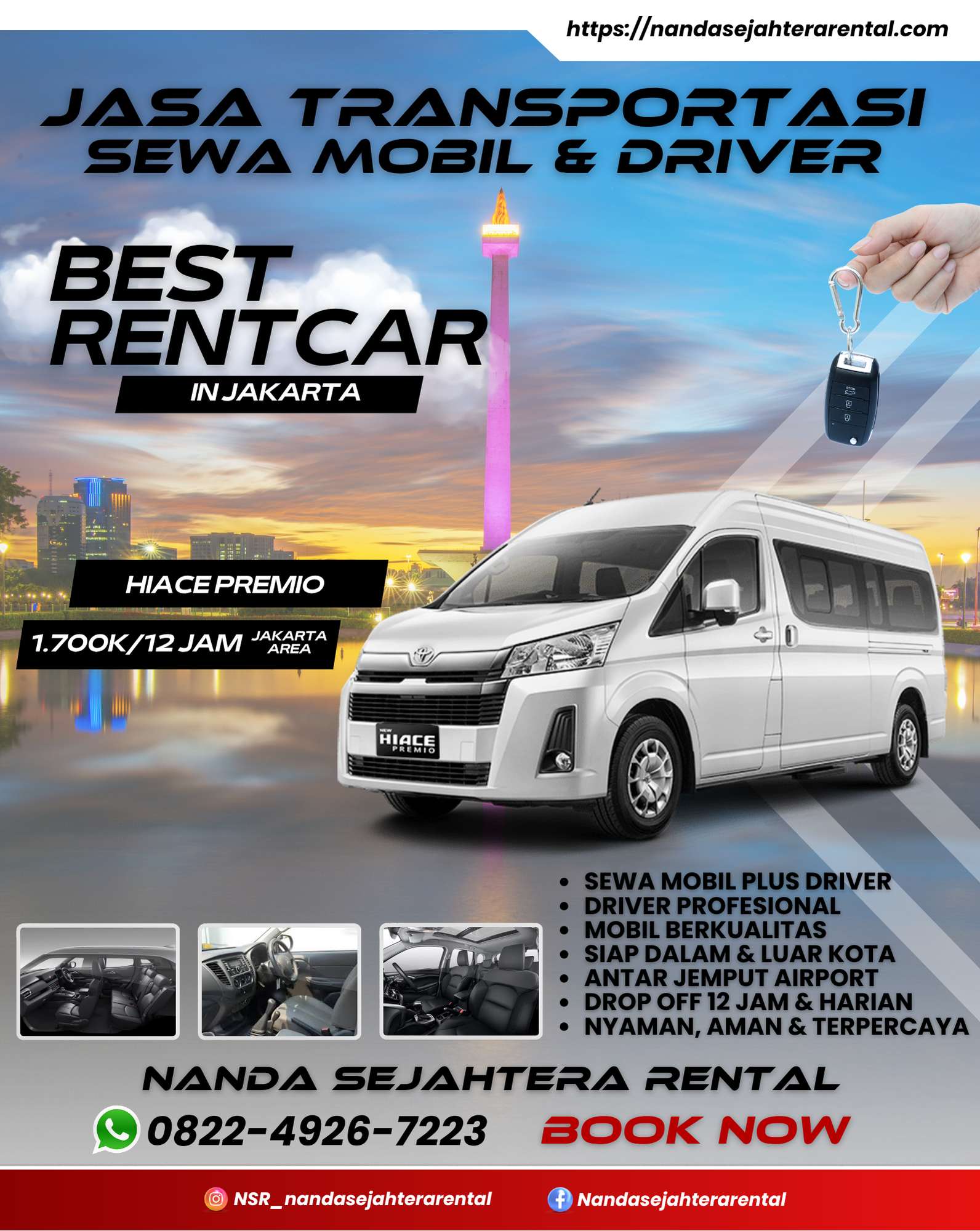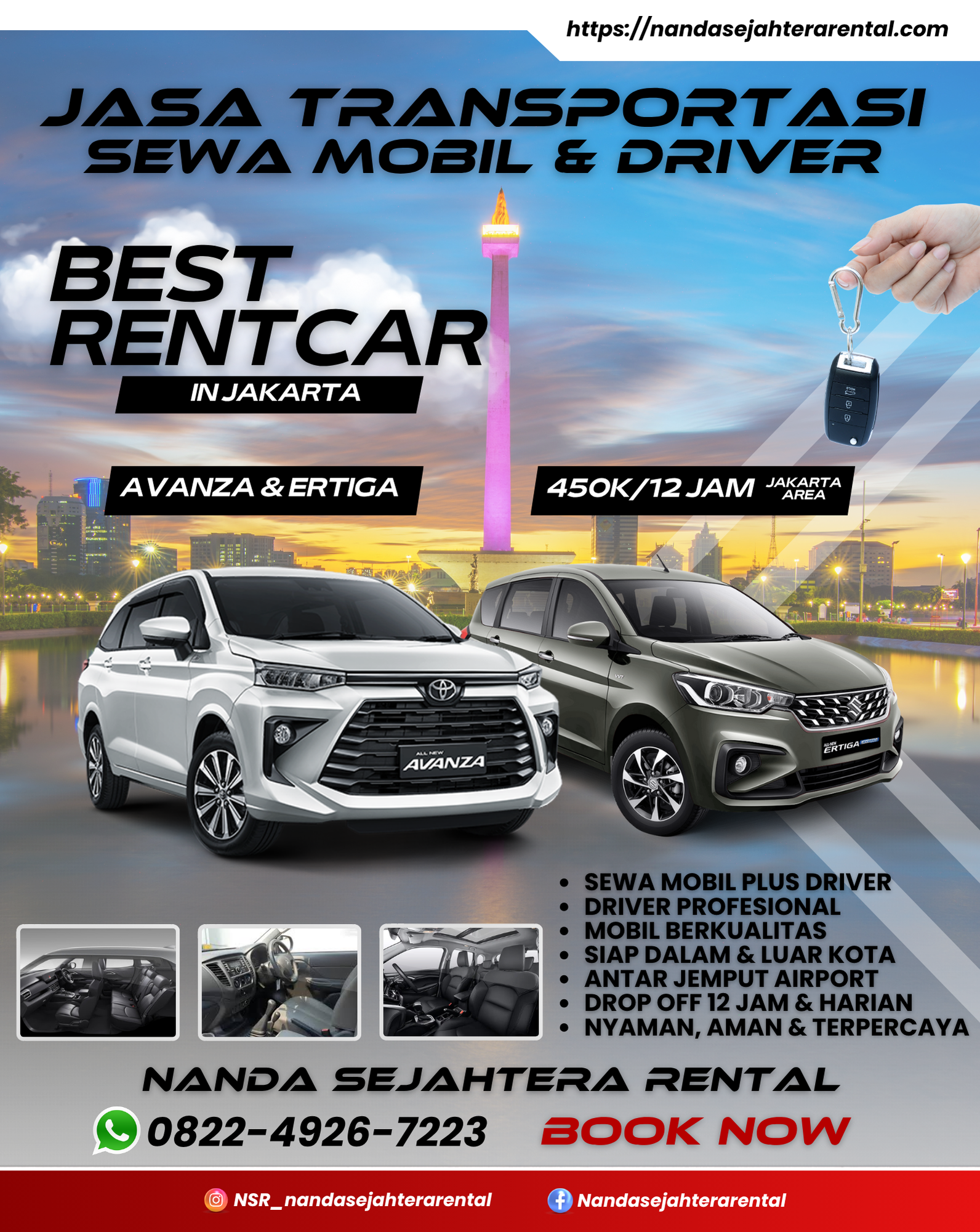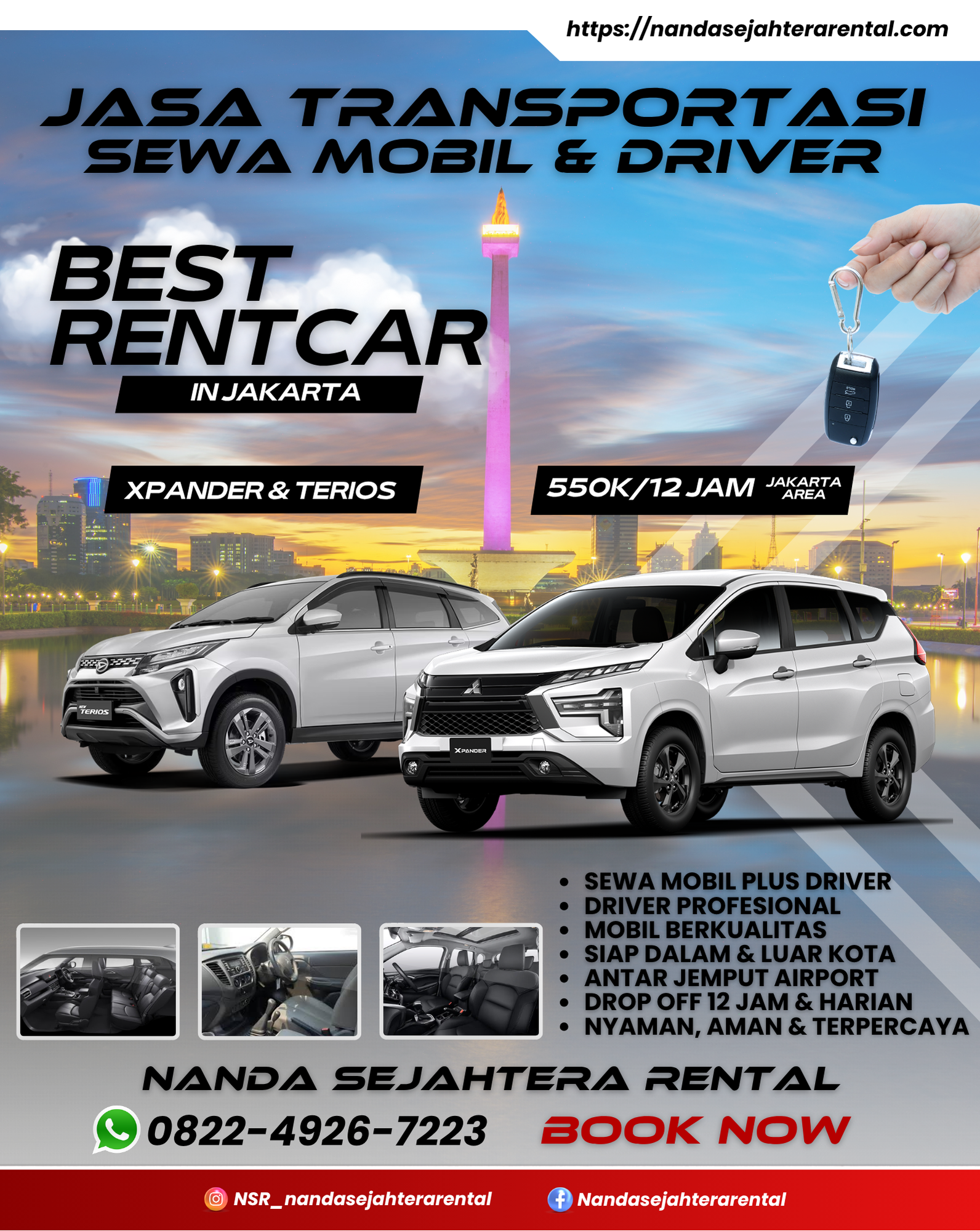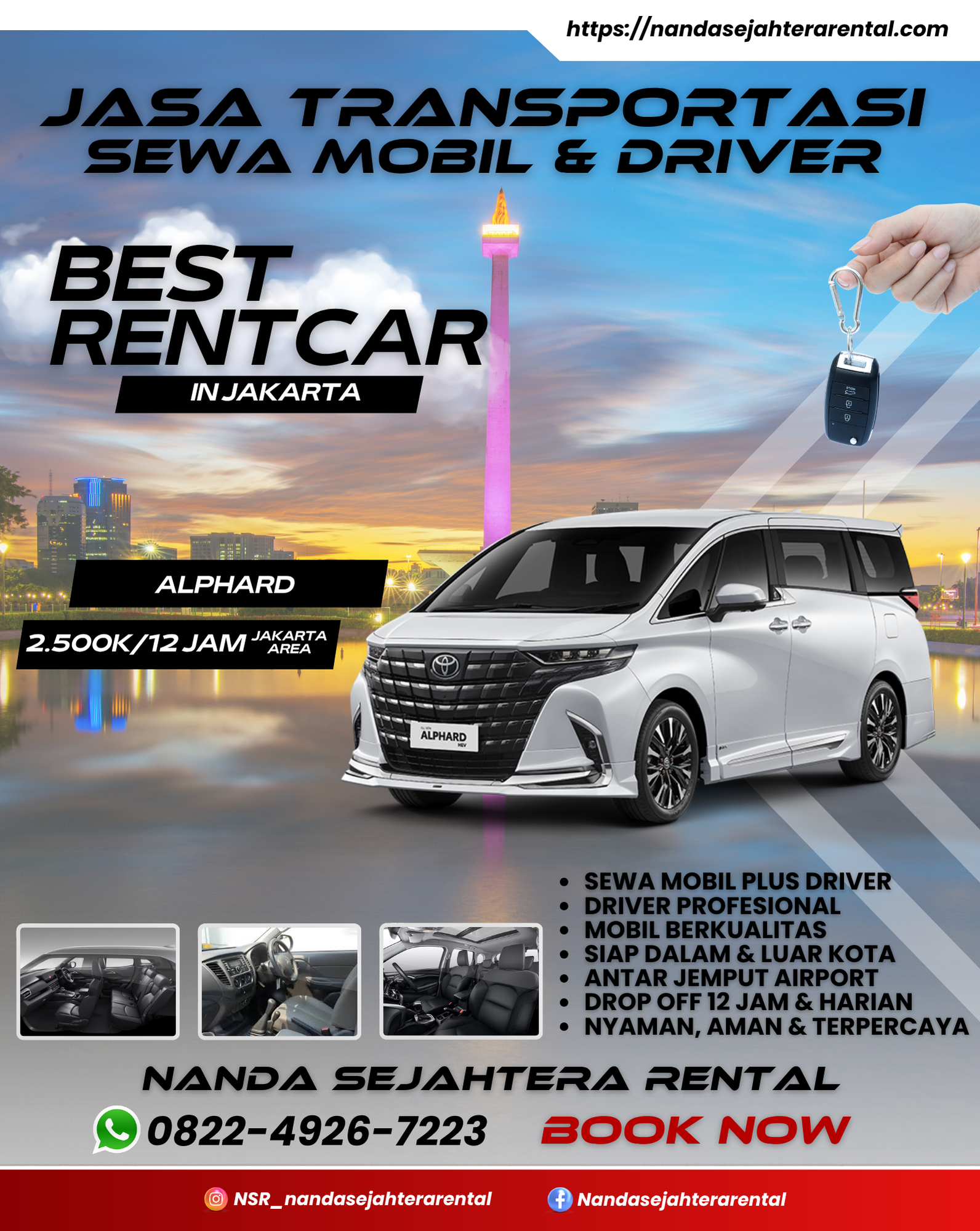 Selamat datang di Nanda Sejahtera Rental tempatnya rental mobil terbaik se-jabodetabek! Kami melayani sewa mobil dengan harga dan mobil terbaik, dan tentunya supir terbaik juga! tertarik? langsung saja cek armada kami untuk memesan layanan kami